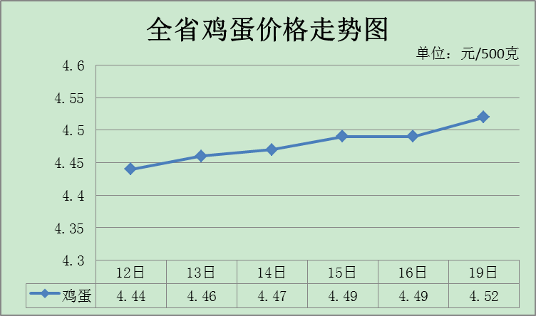 4、鸡蛋价格略有上涨。受高温天气影响,蛋鸡产蛋量下降,本周蛋价略有上涨。本周一鸡蛋4.52元,比上周一上涨1.8%,同比上涨45.81%。