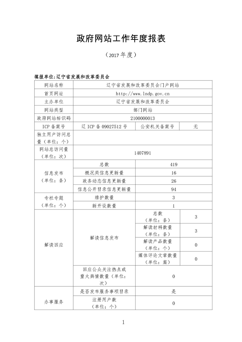 2017年度辽宁省发展和改革委员会门户网站工作年度报表